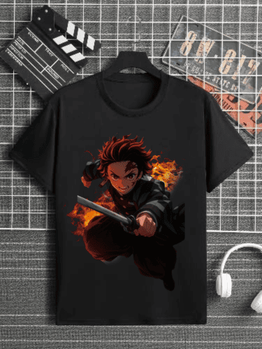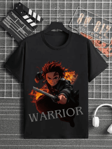Level up your street style with Zenextt’s Anime Tanjiro T-Shirt — a bold unisex black tee featuring a fierce anime character with flaming blade energy and the word “WARRIOR” in bold neon typography.